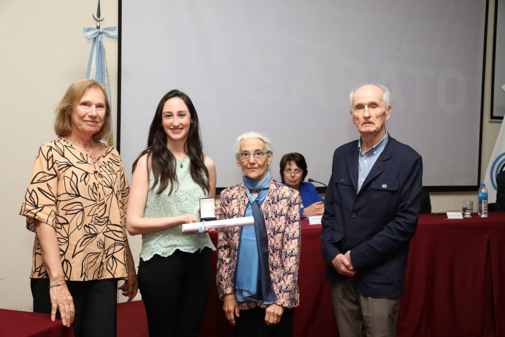 Y el reconocimiento por su gran labor y colaboración desde la creación del Instituto, Beatriz Pingitore, asistente de la Gerencia Instituto Sabato, con una larga trayectoria como secretaria.