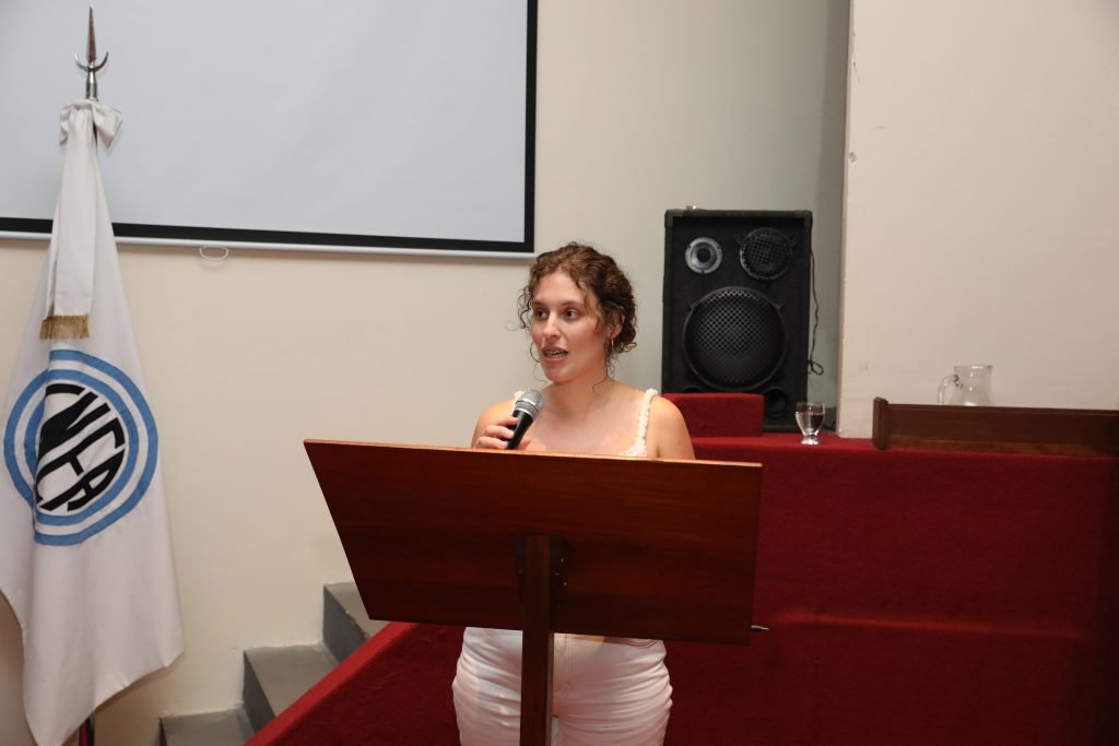 Por último, tuvimos las palabras de los egresados representada por el INg. Juan Battaglia Gasparini, por la carrera de grado y la Magister Ailen Salemme, por los posgrados. Ambos destacaron l a importancia de estudiar en un lugar como el Instituto Sabato y su virtud, no solamente en la excelencia en la formación, sino también por que "el grupo que se formó en el Instituto, es más que un grupo, es una familia. Y estamos inmensamente felices por ello", expuso Juan.