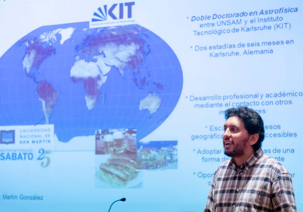 Nicolas Martín Gonzáles, reciente egresado del Doctorado en Astrofísica, se centró en su trabajo de tesis, cuya disertación se hizo en videoconferencia con el Karlsruhe Institute of Technology de Alemania, lugar donde estuvo dos estadías de seis meses haciendo su trabajo de tesis, de carácter interinstitucional.