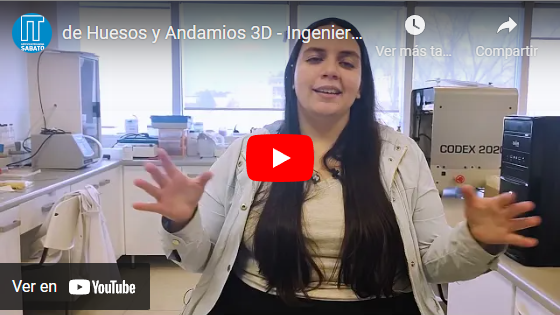 Camila se encontró con el Lab3Bio que es el Laboratorio de Biomateriales, Biomecánica y Bioinstrumentación (Lab3Bio), que funciona en el Instituto de Tecnologías Emergentes y Ciencias Aplicadas – ITECA, de la UNSAM – CONICET de la Escuela de Ciencia y Tecnología. Allí trabajó 6 meses con 2 materiales que cuyas características ean útiles para construir los Andamios: “Los andamios son una estructura que permite la formación de nuevo huesos, o sea, ayuda al hueso a que se regenere. Hay casos en los que se colocan implantes o injertos donde se reemplaza una parte del hueso pero no se regenera. Una placa de titanio, por ejemplo, en el cráneo. Esa placa va a estar de por vida, pero bueno, ahí es donde aparecen los andamios. Los andamios no buscan reemplazar sino ayudar o asistir a que se regeneren los huesos”, nos cuenta Camila.