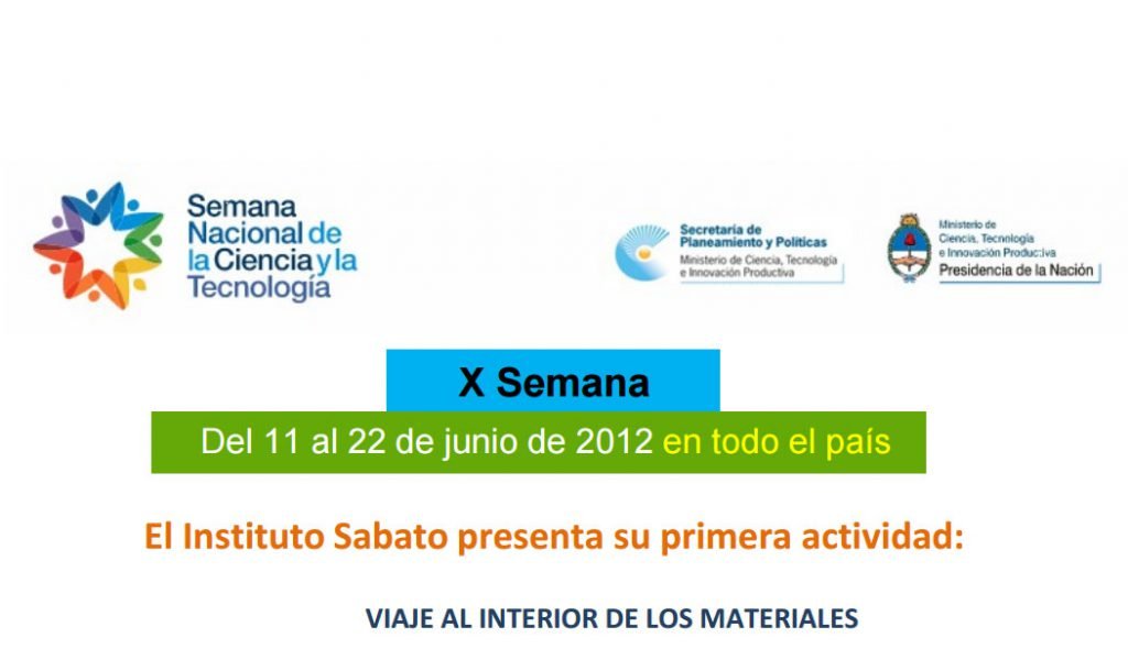 X SemanaDel 11 al 22 de junio de 2012 en todo el paísEl Instituto Sabato presenta su primera actividad: VIAJE