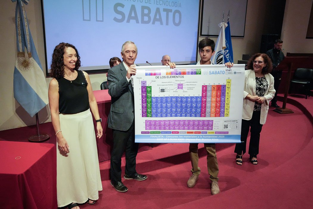 La ceremonia contó también con la presencia de estudiantes de diez colegios técnicos de todo el país, quienes fueron reconocidos por su destacada participación en el 11° Concurso “Los materiales y la humanidad”, organizado por el Instituto Sabato y el Instituto Nacional de Educación Tecnológica. En esta edición se recibieron cerca de 50 trabajos. GANADORES DEL CONCURSO