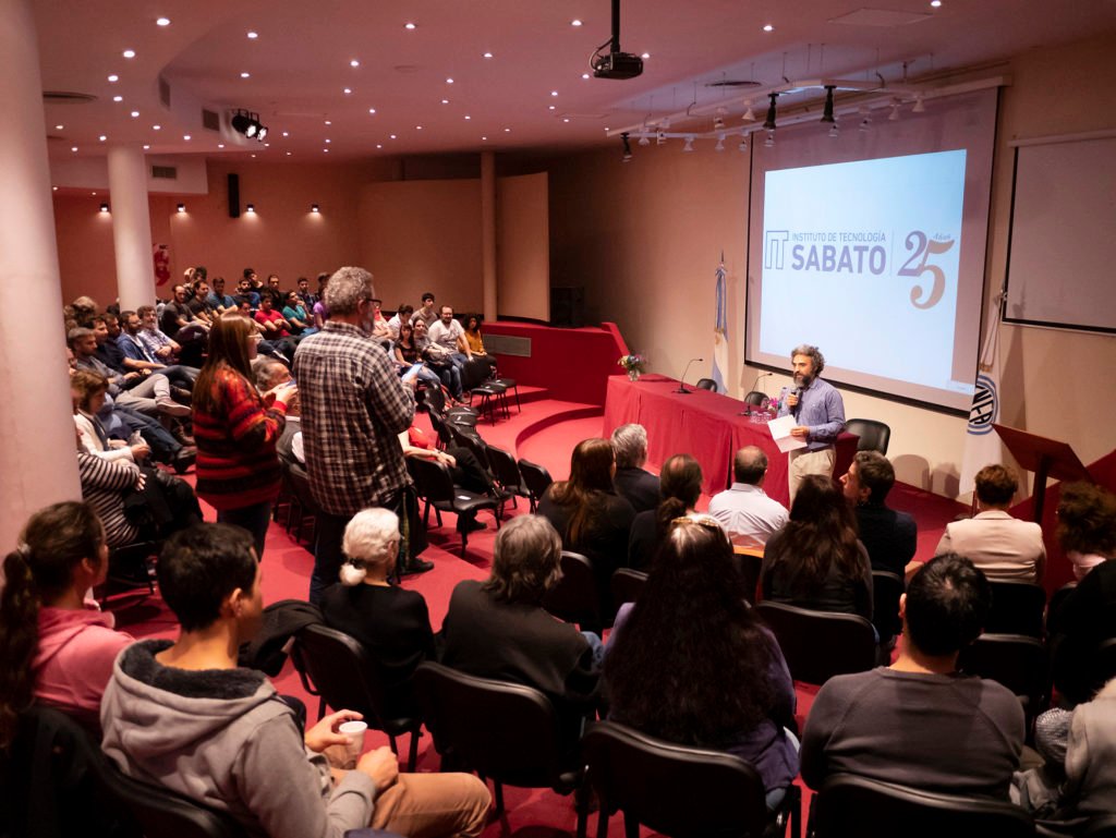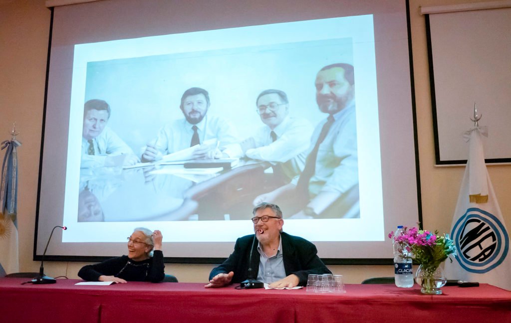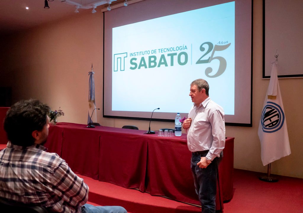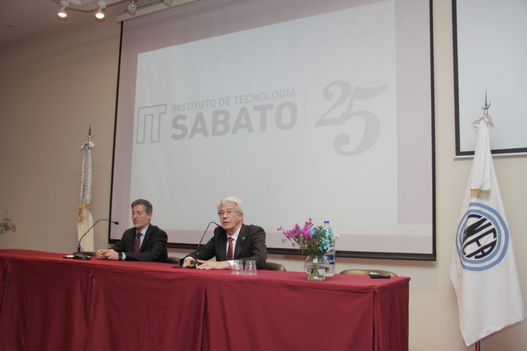 Ana María recordó a los “12 apóstoles”, apodo impuesto a los primeros colaboradores de Sabato por ser los seguidores y parte de su estrategia aplicada a conseguir en el país autonomía nuclear. Uno de ellos estaba presente en el público, Carlos Aráoz, por aquel entonces estudiante de química que formó parte de esos 12 apóstoles de Sabato. También se repasó la creación de la SAM (Asociación Argentina de Materiales), los cursos de Metalurgia y de Materiales que se daban en el Centro Atómico Constituyentes, la creación del Instituto de Ensayos NO Destructivos, etc. Hasta llegar a la creación del Instituto de Tecnología Jorge A. Sabato, el 16 de noviembre de 1993, para destacar los objetivos alcanzados en estos 25 años.