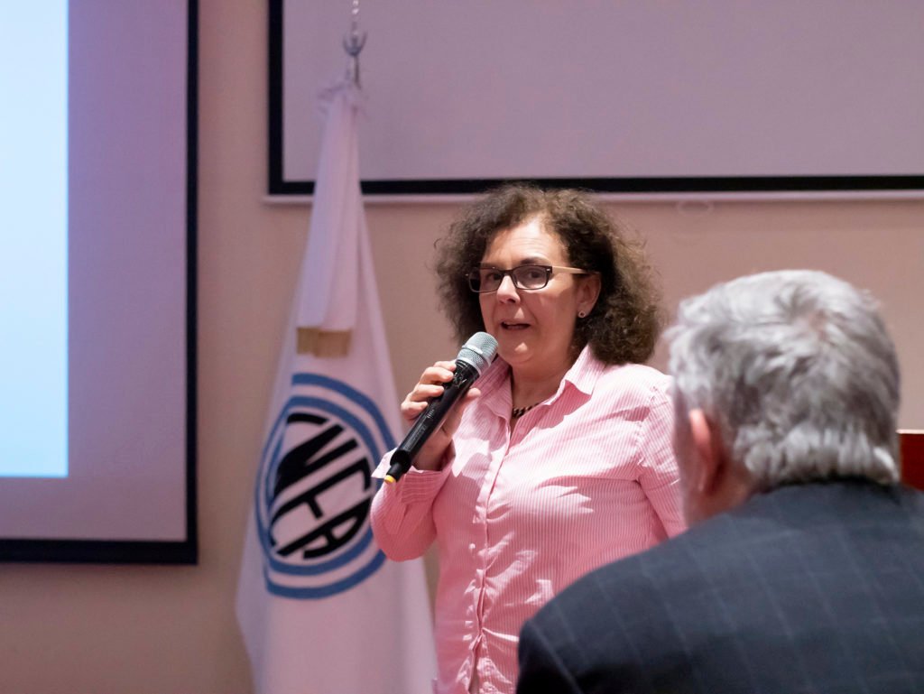 Por último expuso Erica Welti, egresada de Ingeniería en Materiales en  2001 y de la primera cohorte de Especialistas en Ensayos No Destructivos en  2004. Erica actualmente trabaja en YPF como Especialista en materiales de la Gerencia de Ingeniería de Obras y Construcciones, en el sector de Downstream. El discurso de Erica se basó en lindas anécdotas que le dejó el Instituto a lo largo de su formación profesional y un recorrido por su amplia experiencia laboral. “Cuando Ana María me pidió que participe de este panel, empecé a hacer memoria de estos años y me di cuenta de que desde que ingresé al Instituto allá por 1997 hice cosas que no me imaginé que podía hacer, cumplí sueños, fui “la primera” en transitar muchos caminos. Acá tengo referentes, profesores, colegas, amigos y hasta un marido! Hoy puedo decir que, si bien egresé no de una, sino de dos carreras, nunca me fui”, dijo Erica al terminar su charla.