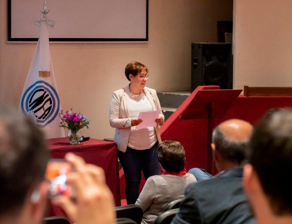Luego de la exposición de los egresados tomó la palabra la decana, Dra. Ana María Monti, quien hizo una recorrida detallada de la “Génesis y evolución del Instituto Sabato”, desde la llega a CNEA del Prof. Jorge A. Sabato, allá por 1954, pensando en desarrollar los elementos combustibles para el primer reactor experimental del país, que se concretó en el actual RA1 ubicado en el Centro Atómico Constituyentes, e  instituir la Metalurgia  como  disciplina académica en un país que carecía de desarrollo en esa área.